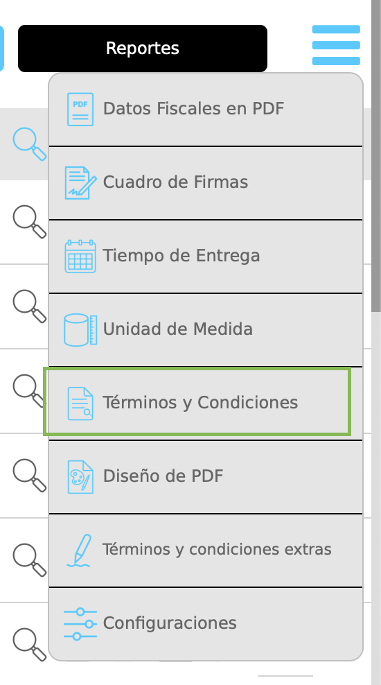 Estos ajustes los puede realizar en el MENÚ de 3 líneas de cotizaciones / diseño de PDF