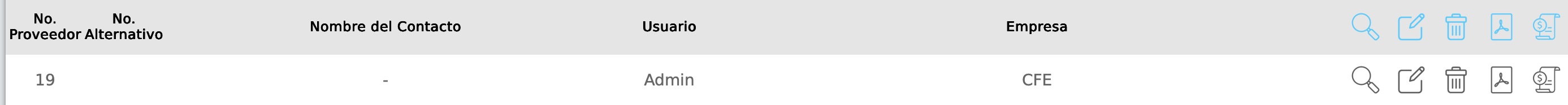 Ver: Mediante esta función podrás visualizar los datos previamente registrados de el proveedor.
