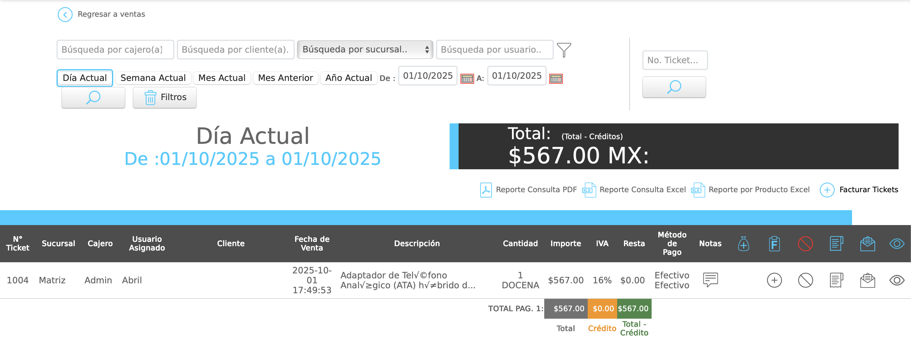 Facturar Tickets: Te permite generar la factura de tickets direccionandote al módulo de Facturación.