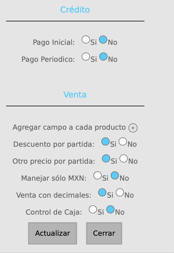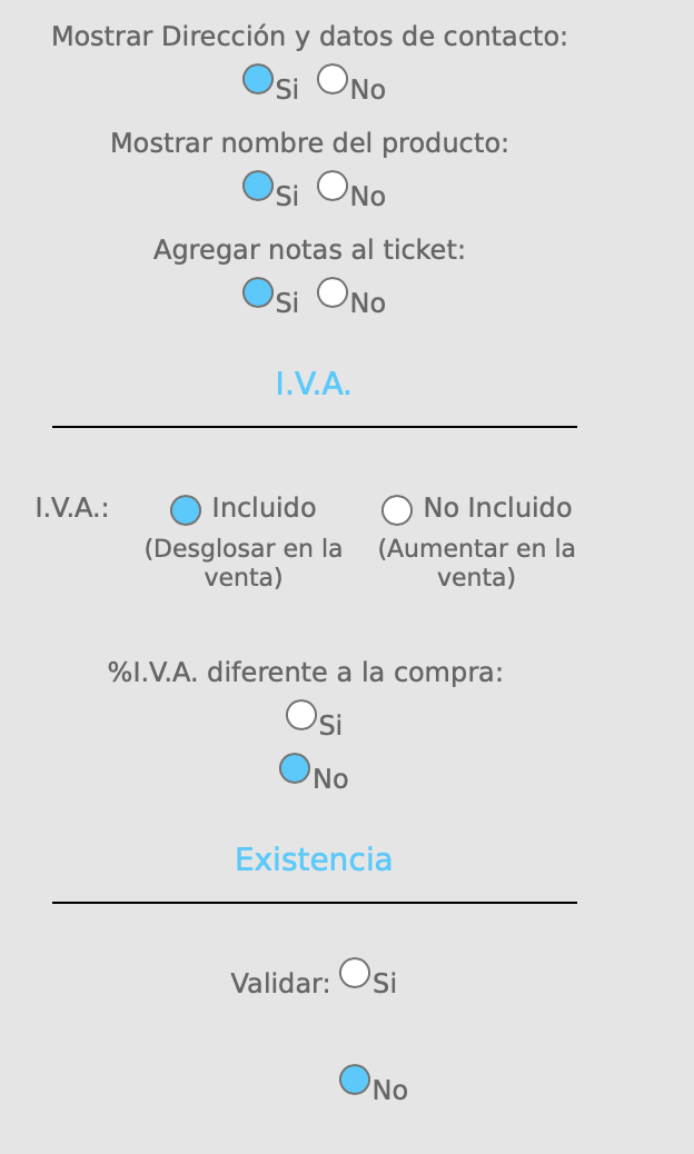 Venta: Configura las opciones que aparecen en la seccion de venta